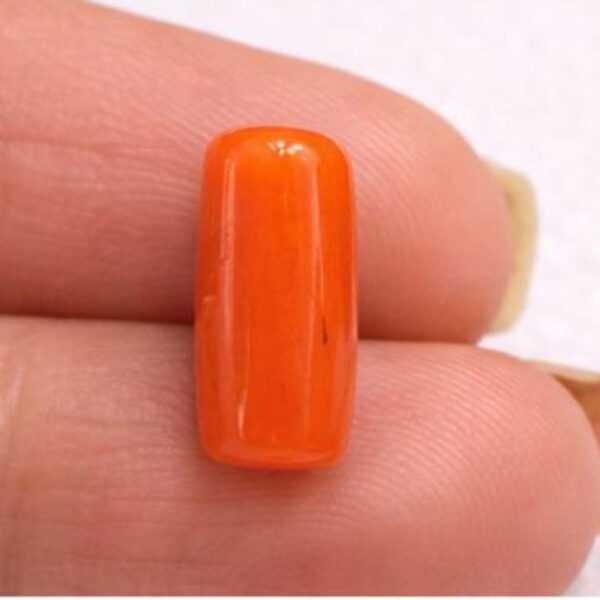 This is a beautiful 6.1 carat Natural Red Coral (Moonga), vibrant in color and smooth in texture. Red Coral is ruled by planet Mars (Mangal Graha) and is considered a powerful gemstone for strength, courage, and vitality.